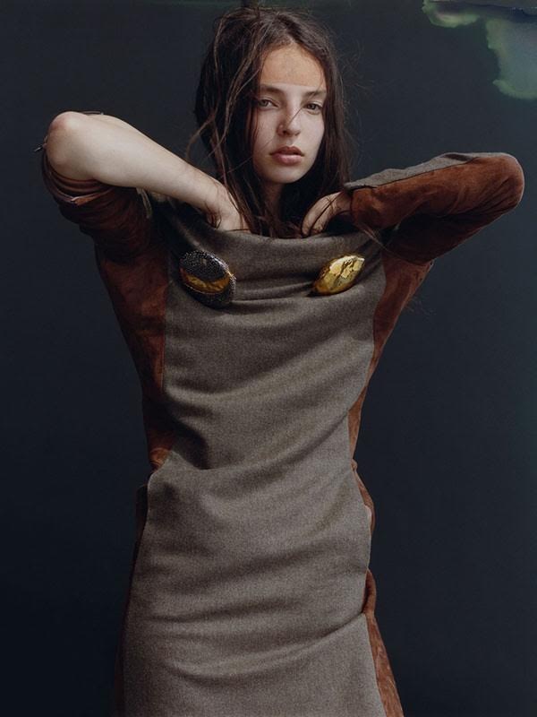New face Sophie Jones poses for Harley Weir’s lens for AnOther magazine’s fall issue, styled by Camille Bidault-Waddington with hair by Rudi Lewis and makeup by Sarai Fiszel.