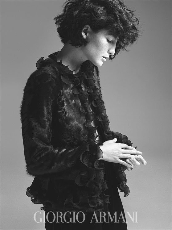 Heather Kemesky becomes the new face of Giorgio Armani, photographed by Mert Alas & Marcus Piggott and styled by Beat Bolliger with makeup by Isamaya Ffrench and hair by Shon.