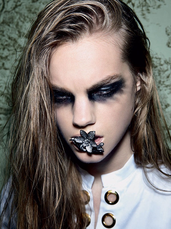 Estella Boersma is featured in Love magazine’s dark, moody spread, photographed by Carin Backoff and styled by Tabitha Simmons with hair by Ashley Javier and makeup by Marla Belt.