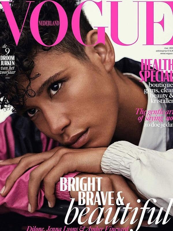 Dilone appears on the new cover of Vogue Nederland, shot by Giampaolo Sgura and styled by Christiane Arp and Nicola Knels with hair by Peter Gray and makeup by Tyron Machhausen.