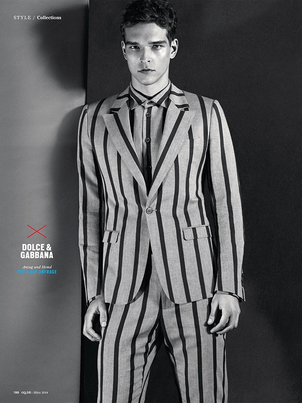 Chad Pitman shot Alex Cunha in a series of fashion portraits for GQ Germany’s spring fashion issue. The Brazilian was dressed in Prada, Kenzo, Dolce & Gabbana, and Jil Sander, which you can see in full after the jump.