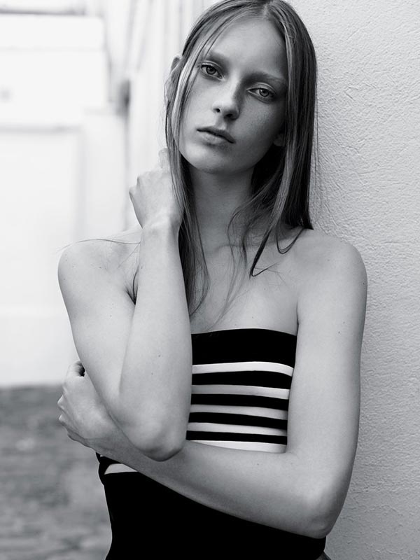 Julia Bergshoeff poses for Karim Sadli’s clean, black-and-white lens for a fall story spread inside T magazine. Joe McKenna styled Bergshoeff in easy, elegant pieces with hair by Malcolm Edwards and makeup by Christelle Cocquet.