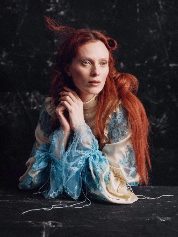 Karen Elson photographed by William Waterworth for British Vogue’s May 2026 issue. Styled by Tabitha Simmons, with hair by Ali Pirzadeh and makeup by Miranda Joyce.
